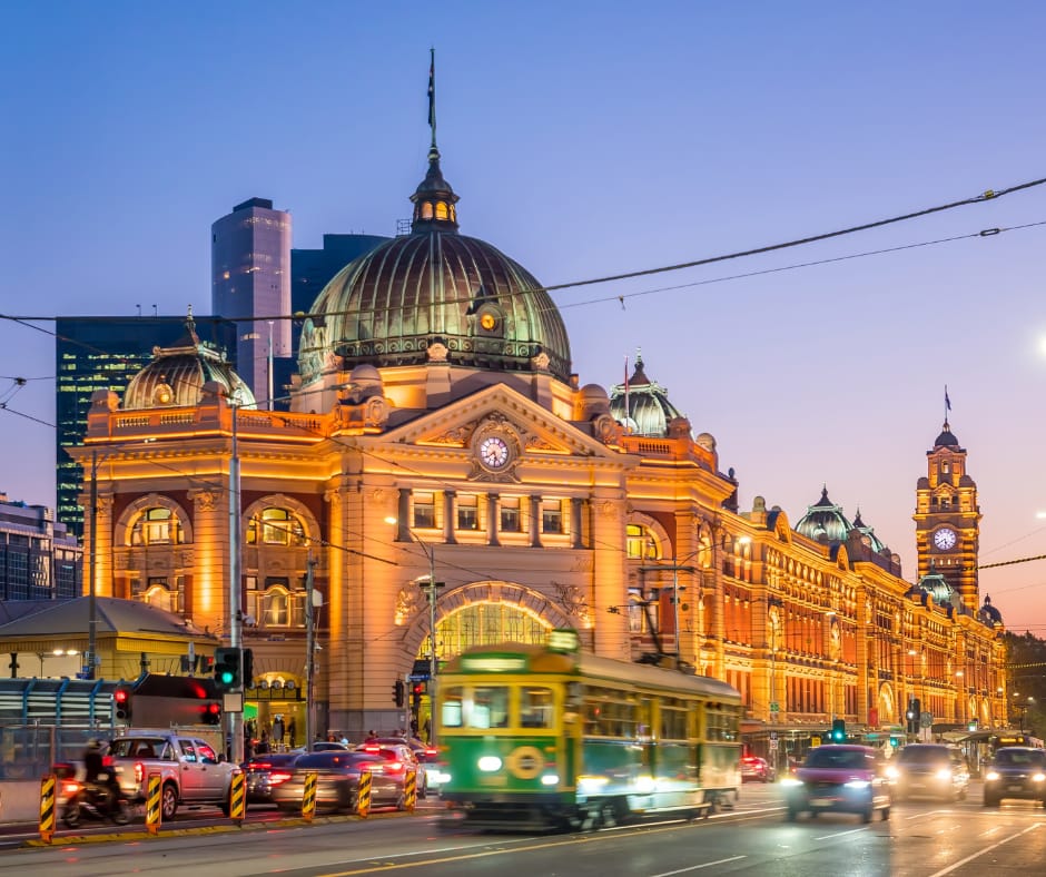 Flinders Street Station is Melbourne’s most iconic railway station, known for its grand yellow façade, arched entrance, and row of clocks that locals still use as a meeting point. Opened in 1910, it sits on the edge of the Yarra River and serves as the busiest train station in Australia.