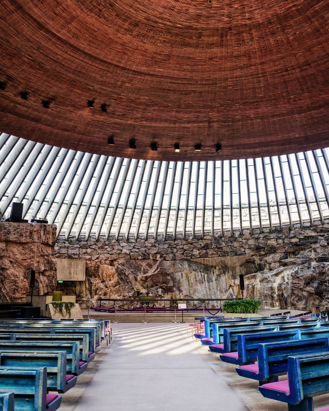Explore the underground Temppeliaukio Rock Church, carved directly into solid stone.
